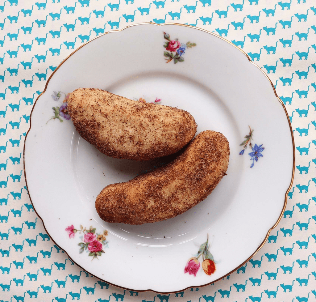 Die noch warmen Kipferl mithilfe von 2 Kuchengabeln vorsichtig im Tee-Zucker wälzen. Aber wirklich gaaaanz vorsichtig, denn die Kleinen sind sehr empfindlich.